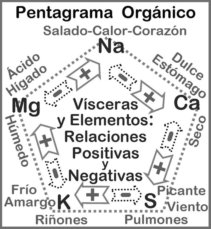 Y de una manera muy específica y directa influye la bioquímica predominante de alimentos sólidos o líquidos que en cada momento ingerimos. Y en esto último me refiero a 5 minerales tan usuales como el Sodio, Calcio, Azufre, Potasio y Magnesio, y lo que contenga sabor Salado, Dulce, Picante, Amargo o Ácido, así como lo Proteínico (C-N-S+H y O), lo Graso (C+H y O) y los Hidratos de Carbono (C+H2O).