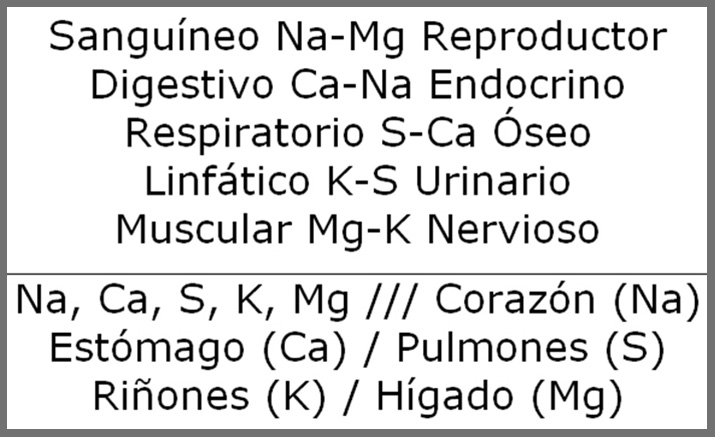 A continuación muestro un Esquema de correlaciones de Sistemas, Elementos y Vísceras: